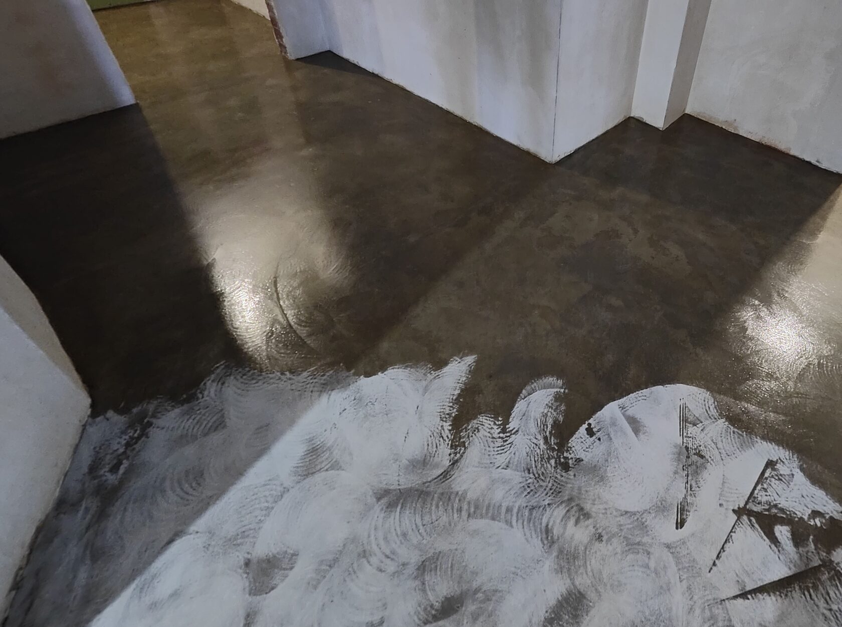 Как и любое другое полимерное покрытие, эпоксидный наливной пол требует тщательной подготовки основания — это особенность технологии. Он хорошо ложится только на ровный и сухой бетон. Если основание пылит, имеет трещины или повышенную влажность, покрытие может вздуться, покрыться пузырями или отслоиться. Это связано с принципом работы эпоксидных материалов: они плотно сцепляются с поверхностью и повторяют её дефекты.