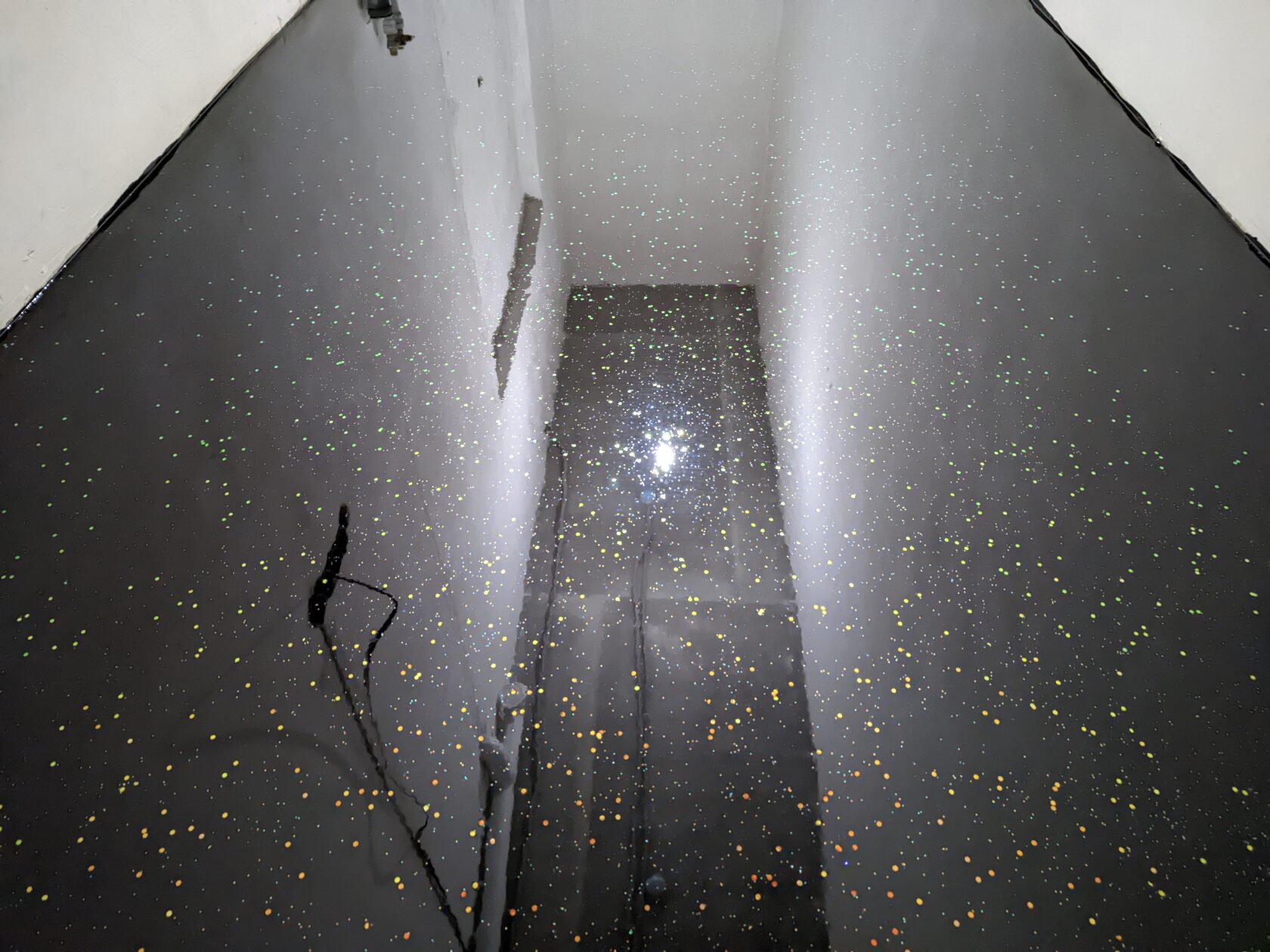 Эпоксидные системы позволяют создавать покрытия с разными визуальными эффектами: однотонные, полупрозрачные, с пигментом или декоративными частицами, например, блёстками. Пол может использоваться как элемент дизайна, так и как часть навигации или зонирования.